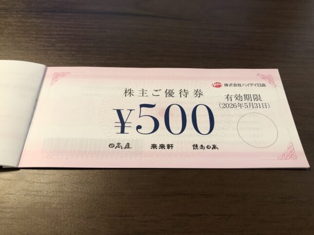 - 2022年5月にハイデイ日高 (7611) より届いた株主優待券の様子