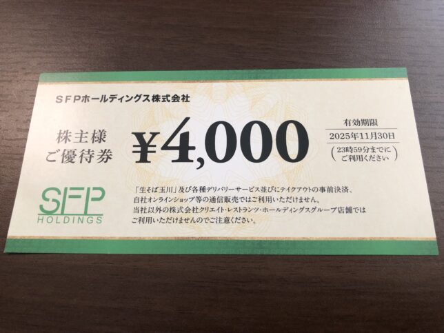 - 2021年11月のSFPホールディングス(3198) から株主優待券が届いた時の様子