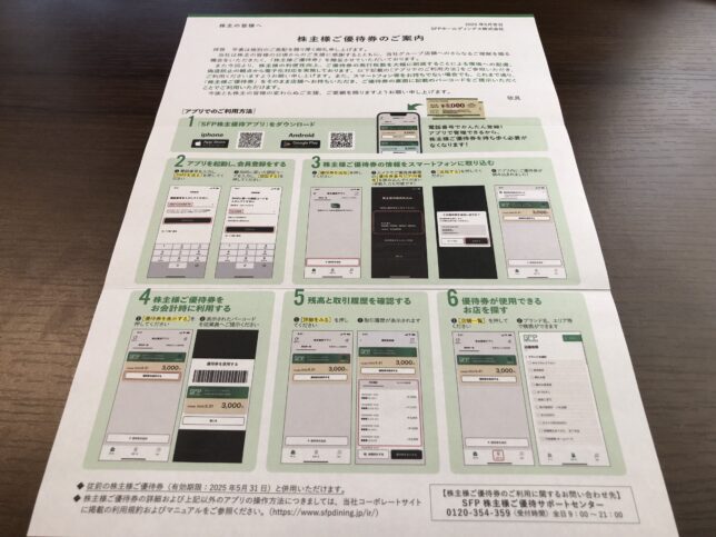 - 2024年5月のSFPホールディングス (3198) から株主優待券が届いた時の様子