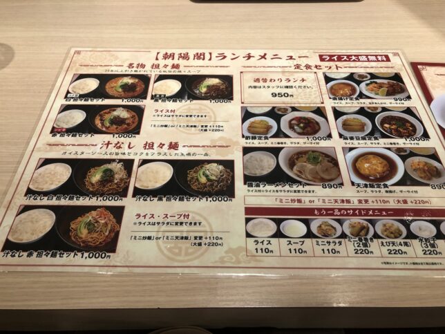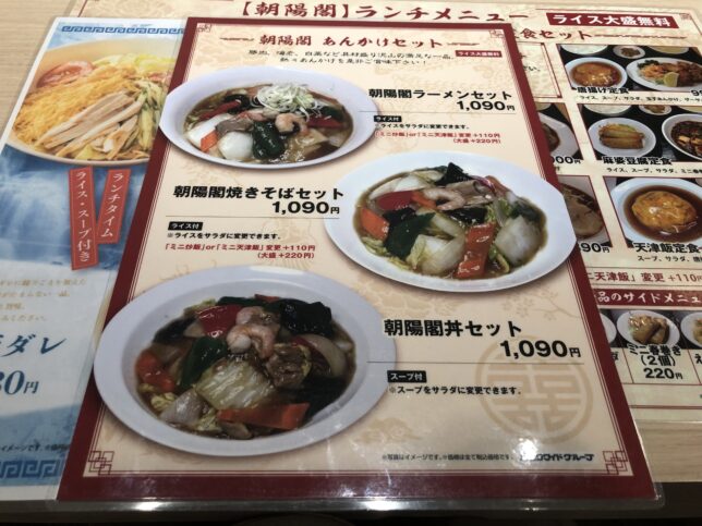 コロワイドグループで利用できますが、以前まで行っていたステーキ宮が閉店されたので、中華ランチで朝陽閣に来ました。ランチ1000円って感じの価格帯です。心斎橋の地下街にあるためランチタイムは、込み合う感じでした。