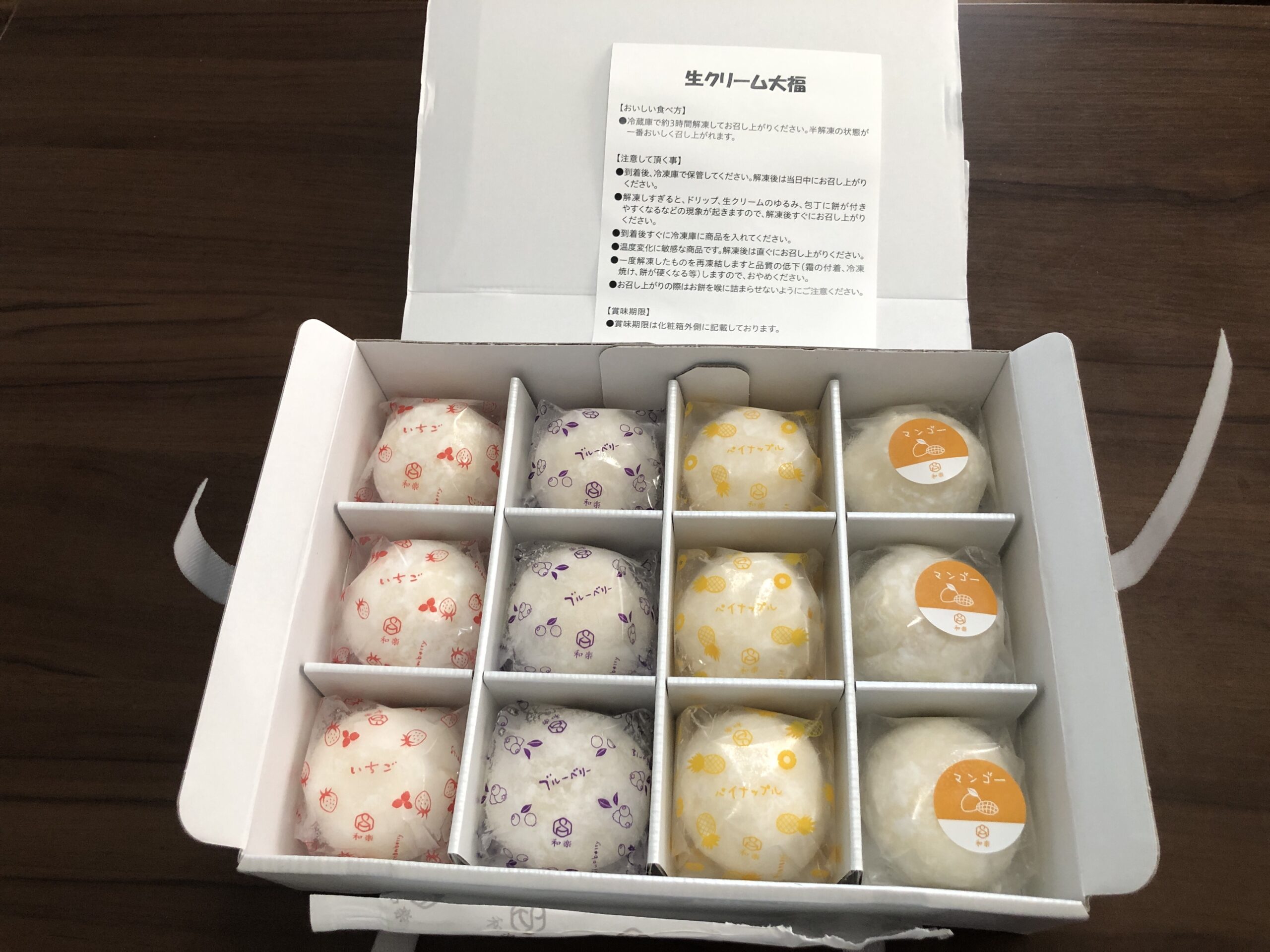 テイエステック(7313)の株主優待で頂いたクリーム生大福をいただきました。解凍に3時間ほどかかるので昼時に冷凍庫から冷蔵庫に移しておりました。解凍具合ほどよくておいしかったです。