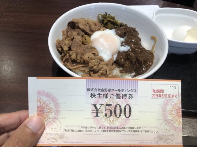 吉野家ホールディングス (9861) の株主優待利用 吉野家にて株主優待ランチ