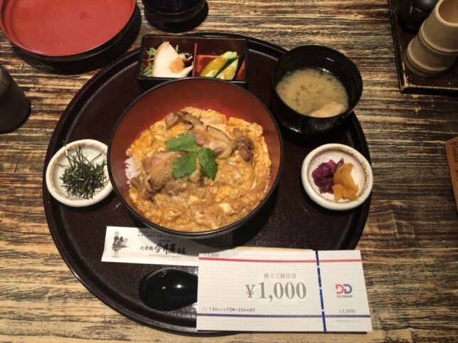DDグループ (3073) は、居酒屋『わらやき屋』など複数業態の飲食店を運営しています。居酒屋もありますし、カフェもあります。グループ傘下のお店で優待券を利用できて500円単位の電子チケットになっています。ランチタイムであれば、お店が限られますが1000円ピッタリのランチも出来ます。