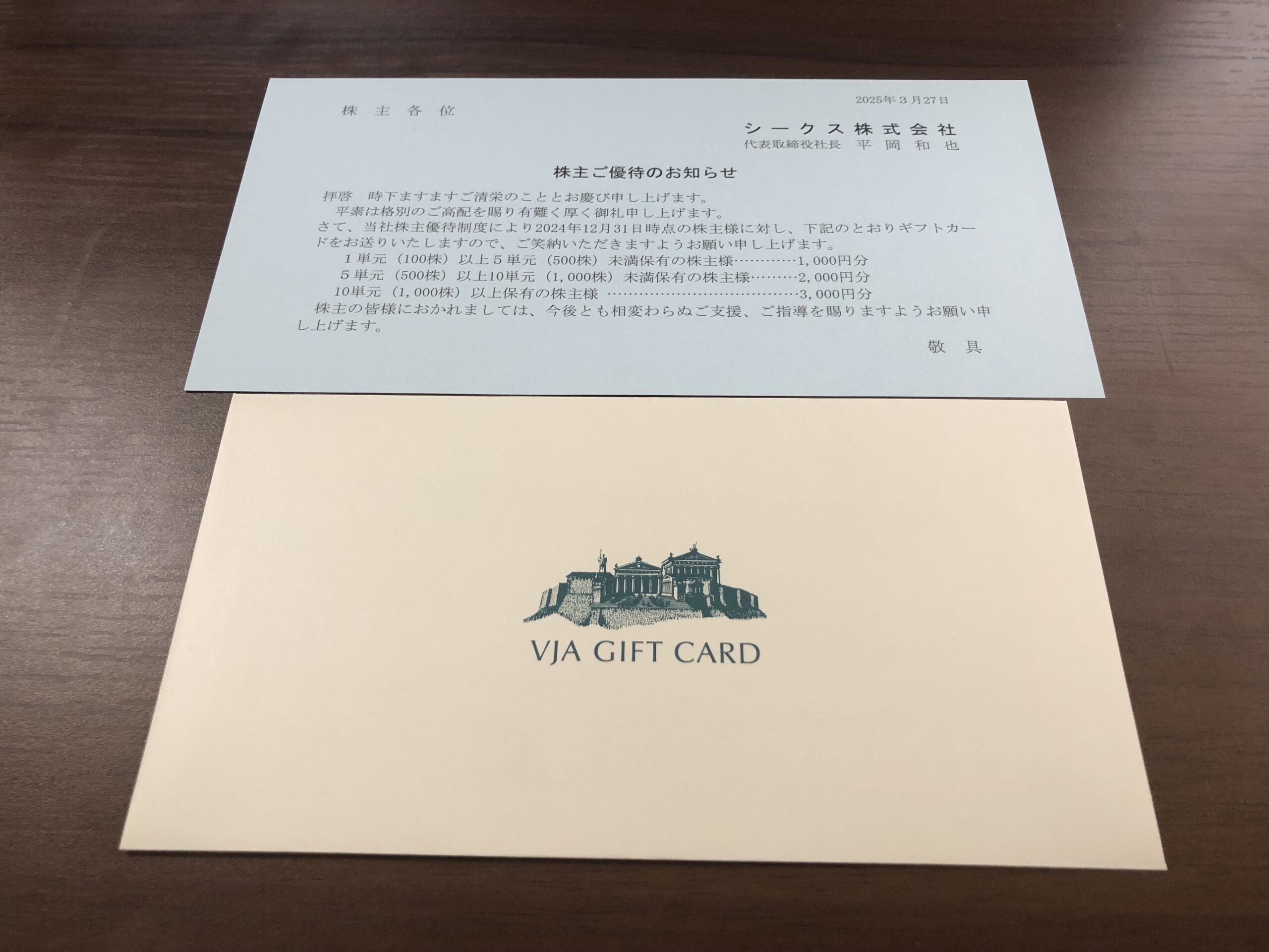 シークス (7613)の株主優待は、年一回期末期にギフトカードが頂けます。